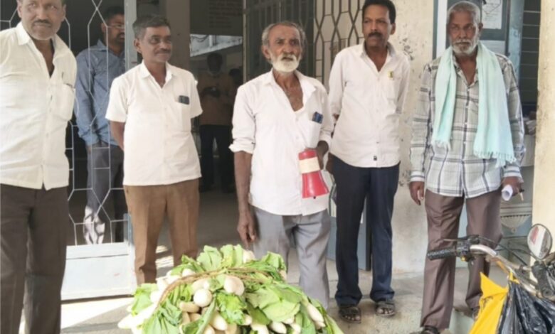 ಅಧಿಕಾರಿಗೆ ಲಂಚ ಕೊಡಲು ಮೂಲಂಗಿ ಬೆಳೆ ತಂದು, ಬನ್ನಿ.. ಬನ್ನಿ.. ಎಂದು ಘೋಷಣೆ ಕೂಗಿದ ರೈತ