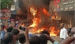 ಭಾನುವಾರ ಸಂಜೆ 5.20 ರ ವೇಳೆಗೆ ಕಟ್ಟಡದ ನೆಲ ಮಹಡಿಯಲ್ಲಿರುವ ಮೊಬೈಲ್ ಅಂಗಡಿಯಲ್ಲಿ ಶಾರ್ಟ್ ಸರ್ಕ್ಯೂಟ್ನಿಂದಾಗಿ ಬೆಂಕಿ ಕಾಣಿಸಿಕೊಂಡಿದ್ದು, ನೋಡ ನೋಡುತ್ತಿದ್ದಂತೆ ಬೆಂಕಿಯ ಕೆನ್ನಾಲಿಗೆ ಇಡೀ ಕಟ್ಟಡಕ್ಕೆ ವ್ಯಾಪಿಸಿದೆ. ಕಟ್ಟಡದಲ್ಲಿದ್ದ ಮೊಬೈಲ್ ಶಾಪ್ ಹಾಗೂ ಹಾರ್ಡ್ವೇರ್ ಅಂಗಡಿಗೆ ಬೆಂಕಿ ತಗುಲಿದ್ದು, ಕ್ಷಣಾರ್ಧದಲ್ಲಿ ಬೆಂಕಿಯ ಕೆನ್ನಾಲಿ ಇಡೀ ಕಟ್ಟಡಕ್ಕೆ ವ್ಯಾಪಿಸಿ ಅಂಗಡಿಗಳಲ್ಲಿದ್ದ ವಸ್ತುಗಳು ಸಂಪೂರ್ಣವಾಗಿ ಸುಟ್ಟು ಕರಕಲಾಗಿವೆ. ದಟ್ಟ ಹೊಗೆ ಎದ್ದಿದ್ದು, ಬೆಂಕಿಯನ್ನು ಹಾರಿಸುವುದಕ್ಕೆ ಅಗ್ನಿಶಾಮಕ ದಳ ಹರಸಾಹಸ ಪಟ್ಟಿದೆ. ಅವಘಡದಿಂದ ಕೋಟ್ಯಾಂತರ ರೂ. ಮೌಲ್ಯದ ಸೊತ್ತುಗಳು ಸುಟ್ಟು ಕರಕಲಾಗಿವೆ.