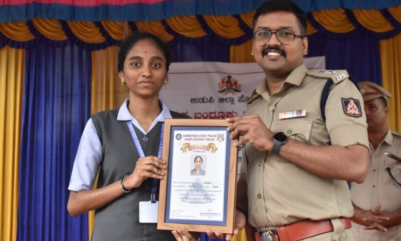 ಉಡುಪಿ ಜಿಲ್ಲಾ ಪೊಲೀಸ್ ಇಲಾಖೆಯ ಸ್ಪರ್ಧೆಯಲ್ಲಿ ಮದರ್ ತೆರೇಸಾ ಪದವಿಪೂರ್ವ ಕಾಲೇಜು ವಿದ್ಯಾರ್ಥಿನಿ ಪ್ರಣತಿಗೆ ದ್ವಿತೀಯ ಪ್ರಶಸ್ತಿ