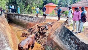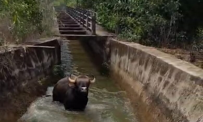 ಕುಂದಾಪುರ: ಅಸೋಡು ವಾರಾಹಿ ಕಾಲುವೆಗೆ ಬಿದ್ದ ಬೃಹತ್ ಗಾತ್ರದ ಕಾಡುಕೋಣ ರಕ್ಷಣೆ