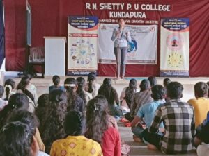 ಯೋಗಾಸನ, ಪ್ರಾಣಾಯಾಮಗಳ ಬಗ್ಗೆ ಅರಿವು ಮೂಡಿಸಲು ಸಂಪನ್ಮೂಲ ವ್ಯಕ್ತಿಯಾಗಿ ಭಾಗವಹಿಸಿದ ಡಾ.ಶಿಲ್ಪಾ. ಕೆ, ವೈದ್ಯಾಧಿಕಾರಿ, ತಾಲೂಕು ಆಯುಷ್ ಆಸ್ಪತ್ರೆ ಕುಂದಾಪುರ, ಇವರು ವಿದ್ಯಾರ್ಥಿಗಳಿಗೆ ಪಠ್ಯ ಶಿಕ್ಷಣ ನೀಡುವುದರ ಜೊತೆಗೆ ದೈಹಿಕ ವ್ಯಾಯಾಮ ಮತ್ತು ಯೋಗ ಶಿಕ್ಷಣದ ಅಗತ್ಯ ಹಾಗೂ ಉತ್ತಮ ಆರೋಗ್ಯಕ್ಕಾಗಿ ಆಯುರ್ವೇದೀಯ ಆಹಾರ ಪದ್ಧತಿಯನ್ನು ಅಳವಡಿಸಿಕೊಳ್ಳುವ ಬಗ್ಗೆ ಸವಿಸ್ತಾರವಾದ ಮಾಹಿತಿ ನೀಡಿದರು.