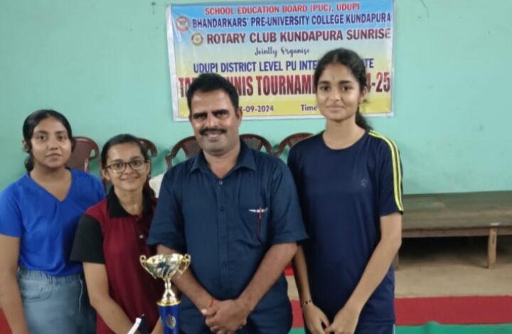 ಕುಂದಾಪುರ: ಪದವಿ ಪೂರ್ವ ಕಾಲೇಜುಗಳ ಜಿಲ್ಲಾಮಟ್ಟದ ಟೇಬಲ್ ಟೆನಿಸ್ ಪಂದ್ಯಾವಳಿಯಲ್ಲಿ ಆರ್.ಎನ್. ಶೆಟ್ಟಿ ಸಂಯುಕ್ತ ಪದವಿ ಪೂರ್ವ ಕಾಲೇಜಿನ ಬಾಲಕಿಯರ ತಂಡ ಪ್ರಥಮ ಸ್ಥಾನ ಪಡೆದಿರುತ್ತದೆ.
