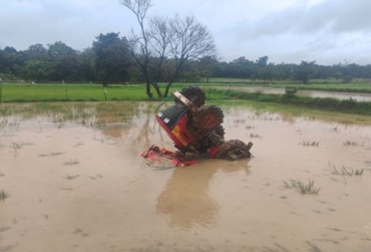 ಗದ್ದೆಯಲ್ಲಿ ಉಳುಮೆ ಮಾಡುವಾಗ ಟ್ರ್ಯಾಕ್ಟರ್ ಮಗುಚಿ ಬಿದ್ದು ರೈತ ಸಾವು