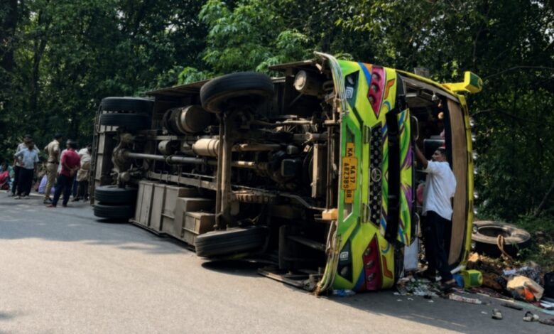 ಚಾರ್ಮಾಡಿ ಘಾಟ್ನ ತಿರುವಿನಲ್ಲಿ ಬಸ್ ಪಲ್ಟಿ: 29 ಮಂದಿಗೆ ಗಾಯ,5 ಮಂದಿ ಗಂಭೀರ