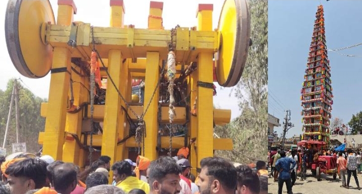 ಜಾತ್ರೆಯ ವೇಳೆ ಕುಸಿದು ಬಿದ್ದ120 ಅಡಿ ಎತ್ತರದ ತೇರು