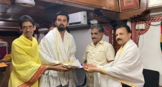 ದೇವಸ್ಥಾನದ ವತಿಯಿಂದ ಕೆ.ಎಲ್.ರಾಹುಲ್ ಅವರನ್ನು ಗೌರವಿಸಲಾಯಿತು.