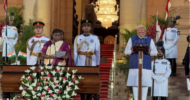 ಎನ್ ಡಿಎ ಮೈತ್ರಿಕೂಟ ಸತತ ಮೂರನೇ ಬಾರಿಗೆ ದೆಹಲಿ ಗದ್ದುಗೆ ಏರಿದ್ದು ಭಾನುವಾರ ಸಂಜೆ ಪ್ರಧಾನ ಮಂತ್ರಿಯಾಗಿ ಸತತ ಮೂರನೇ ಅವಧಿಗೆ ನರೇಂದ್ರ ದಾಮೋದರ ದಾಸ್ ಮೋದಿ ಅವರು ಪ್ರಮಾಣ ವಚನ ಸ್ವೀಕರಿಸಿದರು.