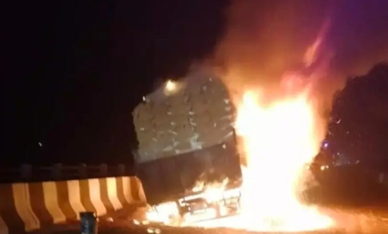 ಬೈಂದೂರು-ಬಿಜೂರು ರಾಷ್ಟ್ರೀಯ ಹೆದ್ದಾರಿಯಲ್ಲಿ ಟಯರ್ಸ್ಪೋಟ: ಲಾರಿ ಬೆಂಕಿಗಾಹುತಿ