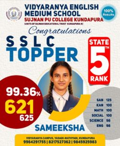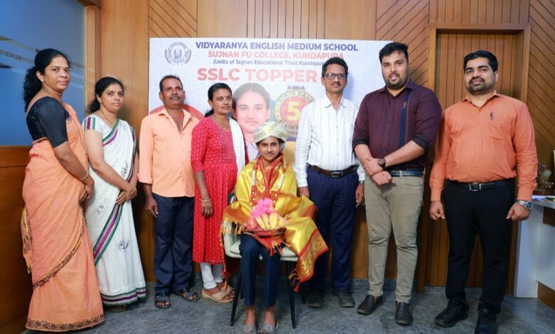 ಕನ್ನಡ ಕರಾವಳಿ ಸುದ್ದಿ: ಕರ್ನಾಟಕ ಶಾಲಾ ಪರೀಕ್ಷೆ ಮತ್ತು ಮೌಲ್ಯನಿರ್ಣಯ ಮಂಡಳಿಯು ಪ್ರಕಟಿಸಿದ 2025-26ನೇ ಸಾಲಿನ ಎಸ್.ಎಸ್.ಎಲ್.ಸಿ. ಪರೀಕ್ಷಾ ಫಲಿತಾಂಶದಲ್ಲಿ, ಇಲ್ಲಿನ ಯಡಾಡಿ-ಮತ್ಯಾಡಿಯ ಸುಜ್ಞಾನ ಎಜುಕೇಶನಲ್ ಟ್ರಸ್ಟ್ನ ವಿದ್ಯಾರಣ್ಯ ಆಂಗ್ಲ ಮಾಧ್ಯಮ ಶಾಲೆಯ ವಿದ್ಯಾರ್ಥಿನಿ ಸಮೀಕ್ಷಾ ರಾಜ್ಯಮಟ್ಟದಲ್ಲಿ 5ನೇ ರ್ಯಾಂಕ್ ಪಡೆಯುವ ಮೂಲಕ ಅಭೂತಪೂರ್ವ ಸಾಧನೆ ಮಾಡಿದ್ದಾಳೆ.