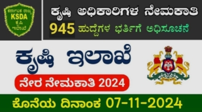945 ಕೃಷಿ ಅಧಿಕಾರಿಗಳ ಹುದ್ದೆಗಳ ಭರ್ತಿಗೆ ಅಧಿಸೂಚನೆ