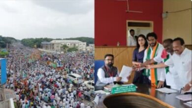 ಬೃಹತ್ ಮೆರವಣಿಗೆ ಮೂಲಕ ನಿಖಿಲ್ ಕುಮಾರಸ್ವಾಮಿ ನಾಮಪತ್ರ ಸಲ್ಲಿಕೆ